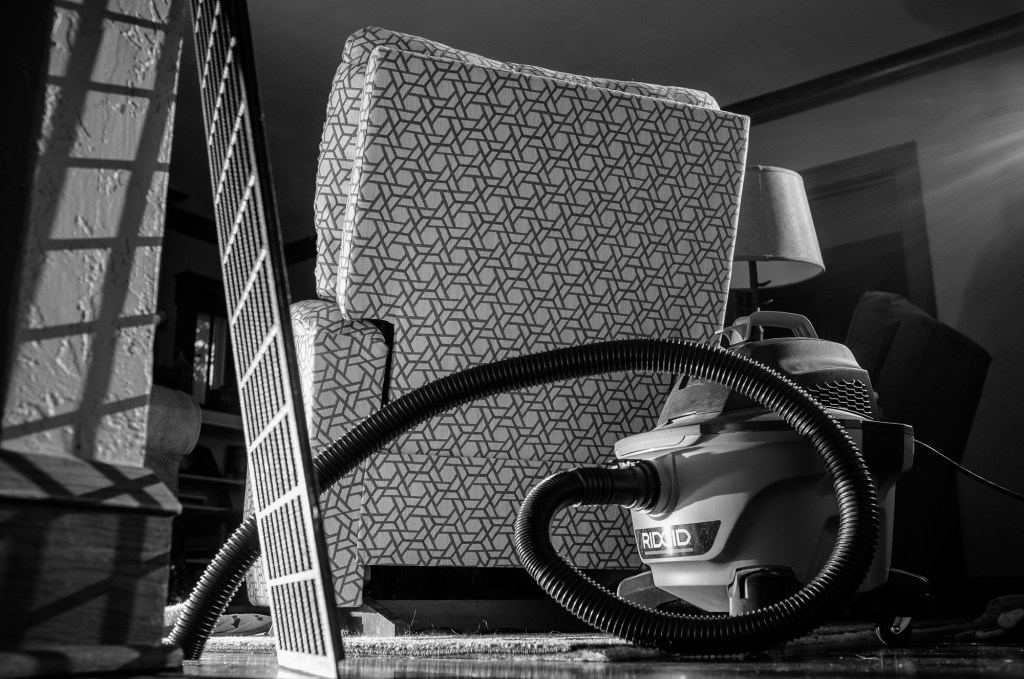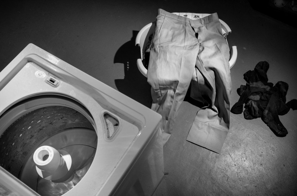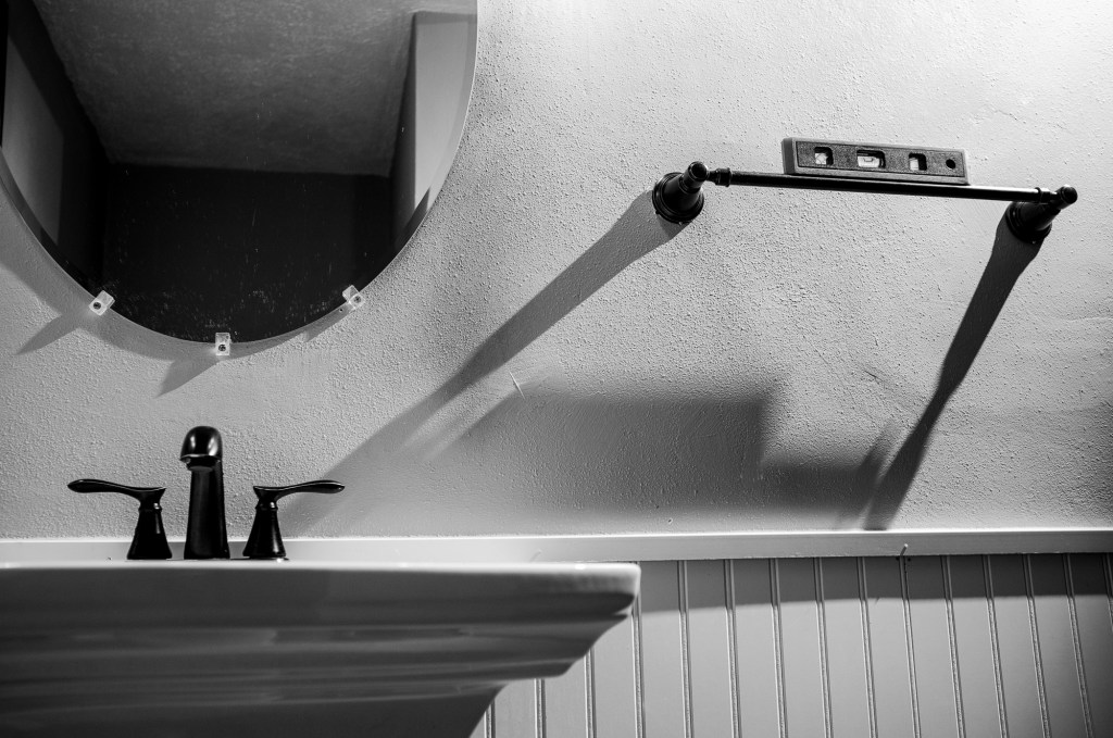 new domestic grew out of my typical tasks around the house, assumptions about still life photographs, and a desire to tinker. The staged scenes are composed while completing the work and lit for dramatic effect. I am challenging the monotony of suburban life and the idea of traditional gendered roles within the home. The photographs are elevating household routines and projects into dramatic memories.